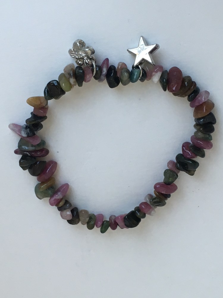 Watermelon Tourmaline with star and flower charms