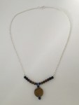 - Round Tiger’s Eye Disk, 4mm Tiger’s Eye, Red Tiger’s Eye, Blue Lapis, and Black Obsidian; Silver Chain with Spring Clasp Closure